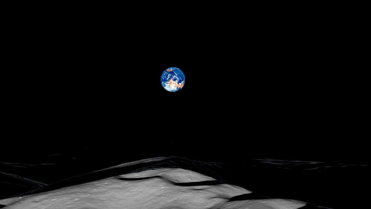 По словам ученых, виртуальная камера расположена на краю кратера Шеклтона и направлена на Землю. "Солнце здесь никогда не садится и встает в нашем понимании. Оно как бы скользит у горизонта, поднимаясь или опускаясь от него не более чем на 1,5 градуса, в то время как Земля движется вверх и вниз, вращаясь против часовой стрелки, но так она видится только с точки зрения наблюдателя", – рассказали астрономы. Кроме того, постоянно низкий угол наклона Солнца создает очень длинные тени, которые ходят по лунному ландшафту.