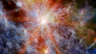 Также благодаря способности телескопа улавливать более длинные и короткие длины волн инфракрасного света изображение дает представление об областях звездообразования в туманности N79.