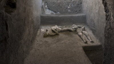 Точнее, от них остались зубы и кости. Пустоты, оставленные под застывшей лавой их мягкими тканями, ученые заполнили гипсом. Это позволило увидеть бывших жителей Помпей. Как пишет Reuters, оба погибших – мужчины. Один из них, вероятно, был в возрасте от 30 до 40 лет и занимал высокий пост. На статус погибшего указали следы шерстяного шарфа под шеей: подобные носили обеспеченные люди. Второй жертве вулкана примерно 18-23 года. Во время смерти он был одет в тунику и имел несколько раздавленных позвонков. Это указывает на то, что он выполнял тяжелый труд и, скорее всего, был рабом.