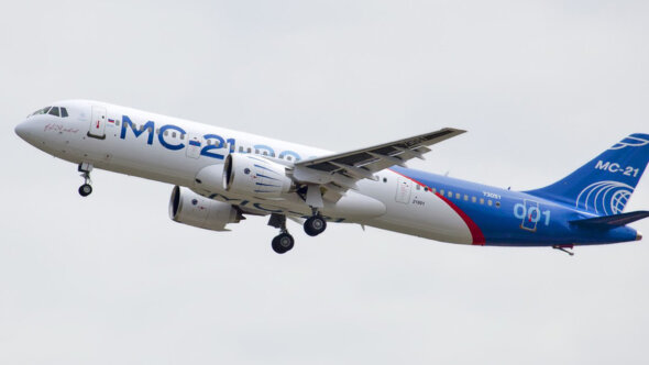 Разработку МС-21 с 2000-х годов ведет корпорация "Иркут", входящая в состав Объединенной авиастроительной корпорации. Первый полет МС-21 состоялся в мае 2017 года. Первым эксплуатантом нового российского лайнера, как ожидается, станет авиакомпания "Россия", входящая в группу "Аэрофлот". Максимальная взлетная масса базовой модели МС-21-300 составляет чуть более 79 тонн, пассажировместимость от 163 до 211 человек, дальность полета – 6000 км. Ключевыми отличиями МС-21 является большая доля композитных материалов в конструкции (так называемое "черное крыло") и более комфортная компоновка пассажирского салона с центральным проходом увеличенной ширины.