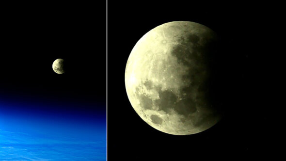 Фотографии частного лунного затмения появились в официальном Telegram-аккаунте "Роскосмоса" в пятницу, 19 ноября. "Прямо сейчас вместе с жителями планеты наблюдаем частное лунное затмение. Самый лучший вид на борту МКС – в иллюминаторе нашего нового модуля «Наука»", – приводит корпорация слова Дуброва.