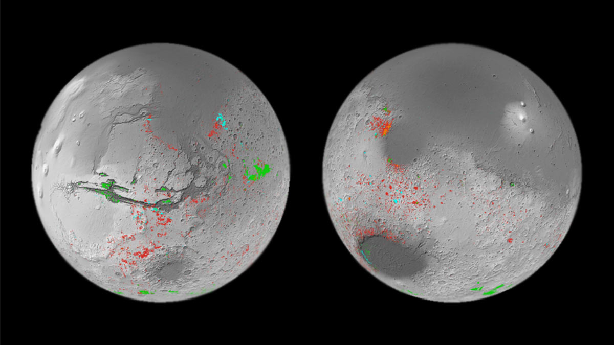 До начала исследования было известно около тысячи месторождений таких пород на Марсе. Новая работа, которую провел планетолог Джон Картер из Университета Париж-Сакле и Университета Экс-Марсель (Франция), выявила гораздо больше. Карта показывает, что на Красной планете, по крайней мере, имеются сотни тысяч подобных месторождений.