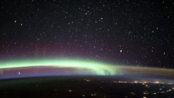 Два наиболее ярких явления верхних слоев атмосферы сошлись в небе на рассвете 16 марта 2020 года. В этот период МКС пролетела над южной Аляской.