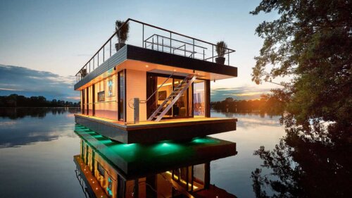 Плавучие дома впервые появились в Соединенных Штатах в начале прошлого века. Затем они распространились в Европе, где возникли поселки из хаусботов. Иногда выбор в пользу дома на воде объясняется высокими налогами на землю, в некоторых случаях – недостаток или высокая стоимость земли в больших городах. Например, в Германии и Нидерландах речные участки стоят намного дешевле земли, поэтому люди предпочитают жилье на воде.