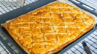 Как приготовить пирог с баклажанами и сулугуни из слоеного теста: