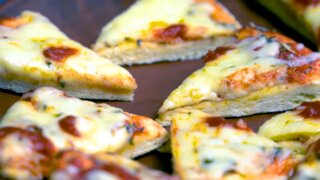 За 30 минут можно приготовить пиццу с жареными помидорами и маслинами. Вымешивать тесто не придется. В этом рецепте предлагается использовать готовое слоеное.