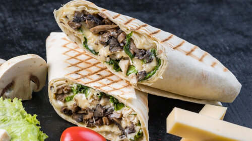 Пошаговый способ приготовления рулета из лаваша с сыром и грибами: