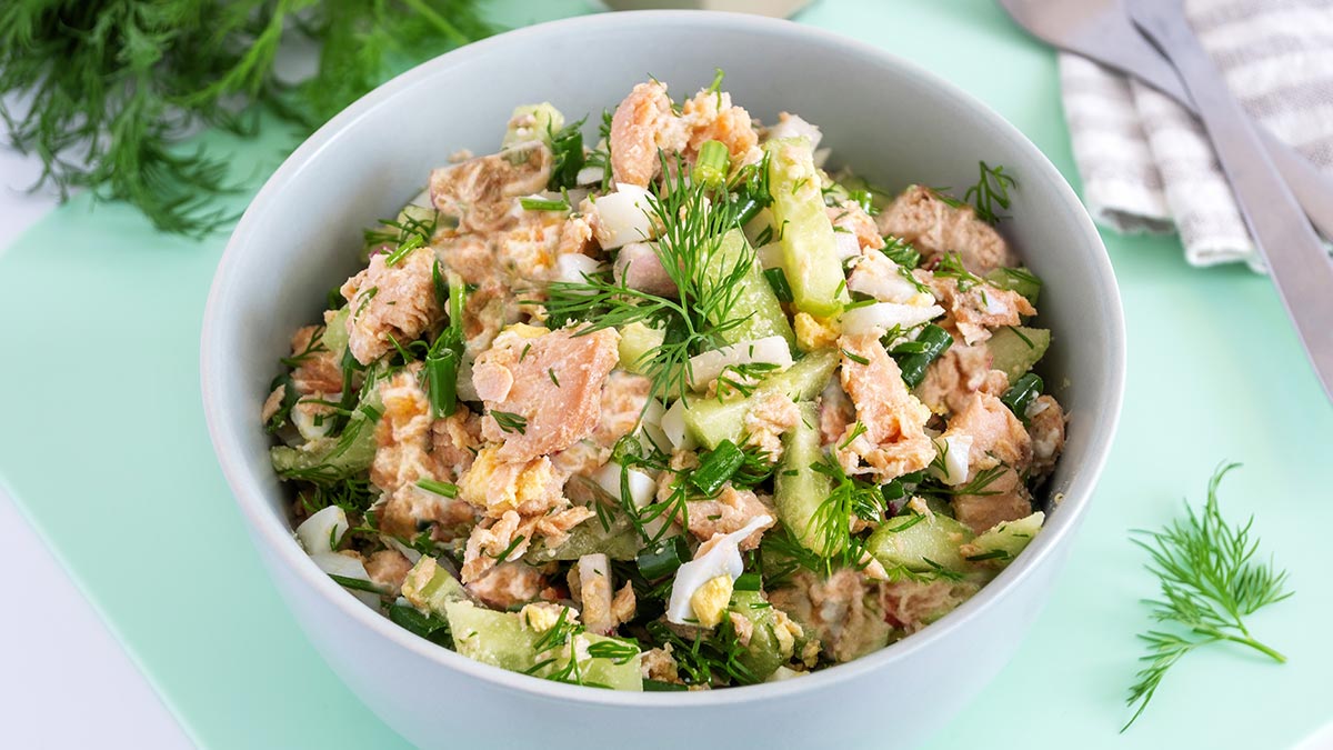 Рецепт салата с горбушей и яйцом