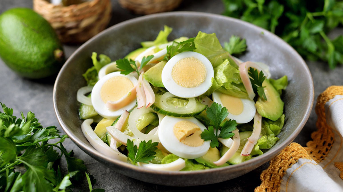 30 минут на кухне: салат с кальмарами, авокадо и огурцом