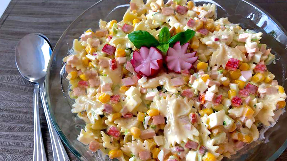 Как приготовить салат с макаронами, сыром и кукурузой: