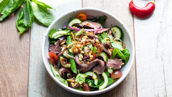 Как приготовить теплый тайский салат с говядиной и болгарским перцем: