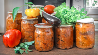 - Разложите готовый салат в банки, закройте крышками, переверните вверх дном и оставьте при комнатной температуре под полотенцем или теплым одеялом до полного остывания.