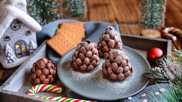 3. "Еловые шишки": оригинальный новогодний десерт без выпечки