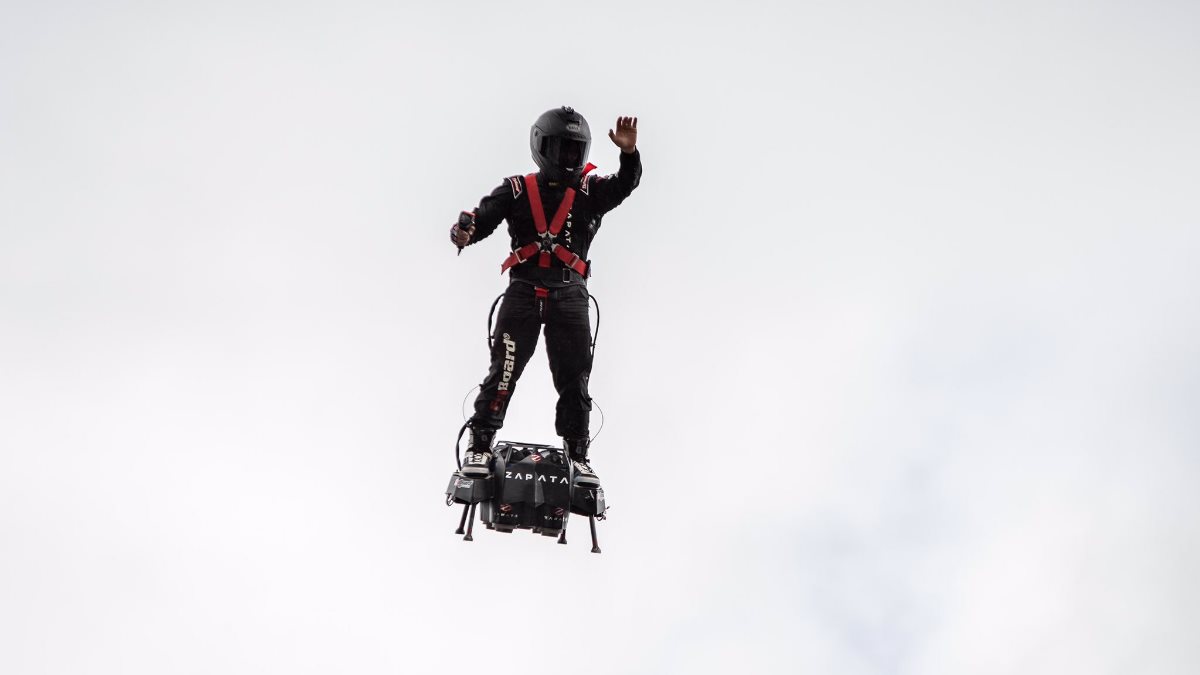 Flyboard Air – это футуристичный летательный аппарат с реактивным двигателем, который является изобретением спортсмена.