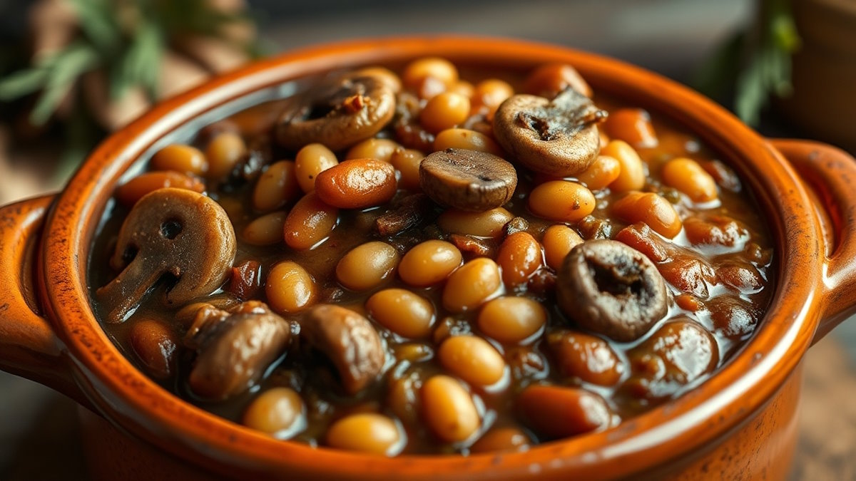 Готовим в горшочках: аппетитная печеная фасоль с грибами