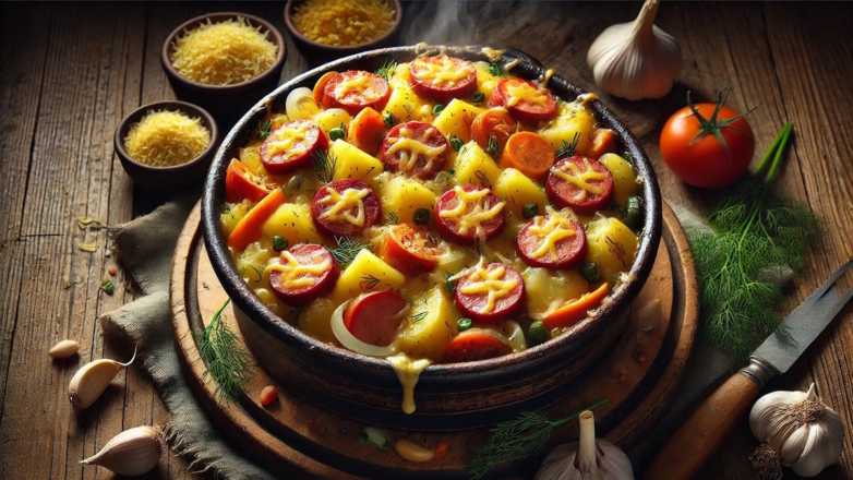 Как приготовить блюдо с овощами и копчеными охотничьими колбасками в горшочках