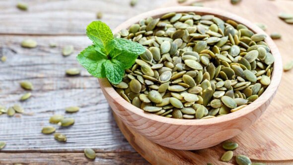 Чтобы поддерживать низкий уровень холестерина, медики рекомендуют включать в рацион тыквенные семечки. Они являются съедобными семенами, которые можно посыпать на еду – это распространенный ингредиент в мексиканской кухне – или съесть в качестве закуски.