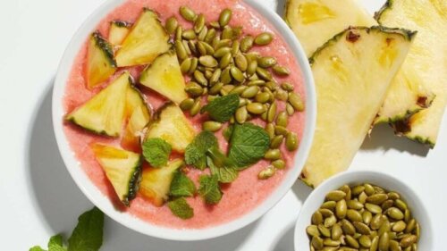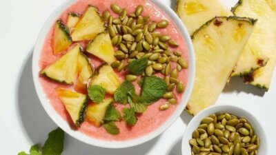 Ананас славится своей способностью улучшать пищеварение. Этот фрукт содержит фермент бромелайн, который помогает расщеплять пищу и уменьшать воспаление слизистой оболочки желудка. Идеально его сочетание с половиной чашки чайного гриба – ферментированного чайного напитка, который изобилует полезными для кишечника пробиотиками. Завершающим штрихом станут тыквенные семечки как дополнительный источник цинка.