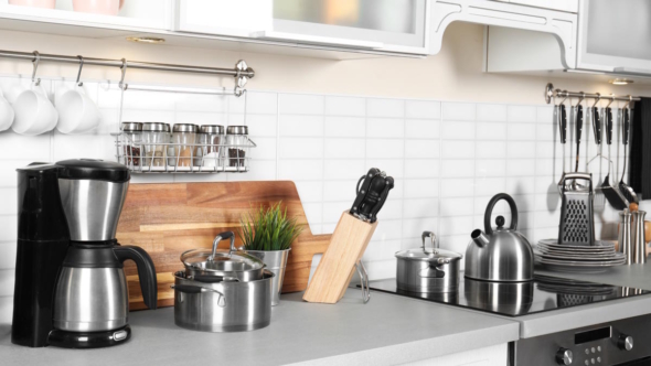 Эксперты отмечают, что кастрюли и сковородки, которые висят над столешницей, – не лучшая идея. Громоздкая посуда "съедает" пространство, в результате чего кухня кажется визуально меньше. Всю габаритную посуду лучше убирать в шкафы, пишет журнал "Идеи вашего дома".