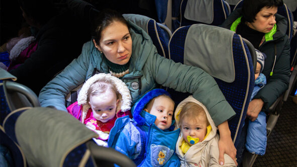 Глава Донецкой Народной Республики Денис Пушилин 18 февраля объявил о начале эвакуации граждан в Россию в связи с обострением военной ситуации. В городах республики была включена система оповещения, вышли экстренные сообщения на ТВ и по радио. Также было организовано СМС-информирование о деталях эвакуации.