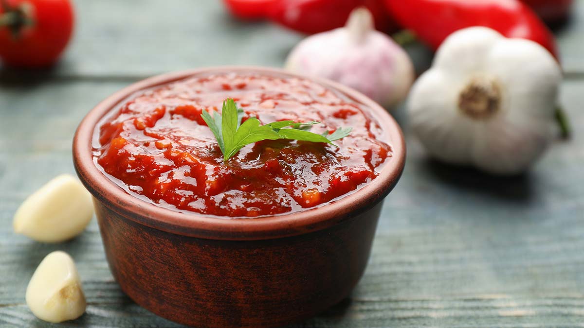 - Перекрутите помидоры на мясорубке или измельчите с помощью блендера.