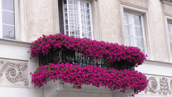 Отличное растение для балконов в регионах с теплым климатом. Петунии могут переносить засуху, и им нужно как минимум шесть часов полного солнца в день. Любит супесчаные или суглинистые почвы. Хорошо переносит подкормки.