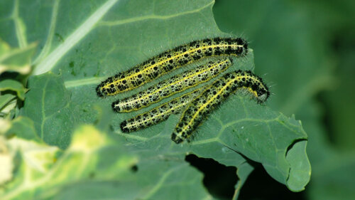 Ярко зеленые в черную крапинку гусеницы объедают целиком листья капусты. Для того, чтобы избавиться от этого вредителя, необходимо тщательно перекапывать огород каждую весну и осень. При появлении на капусте гусениц их можно собрать вручную и уничтожить. Кроме того, следует обработать капусту отваром из чеснока. Чеснок (400 грамм) добавляют в 5 литров воды, 2 часа варят и разводят водой один к одному.