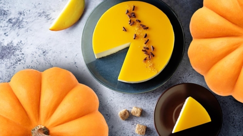 - Отправьте торт в холодильник до полного застывания минимум на 6 часов. Потом останется снять бортики, убрать файлы – и можно подавать тыквенно-апельсиновый торт к столу!