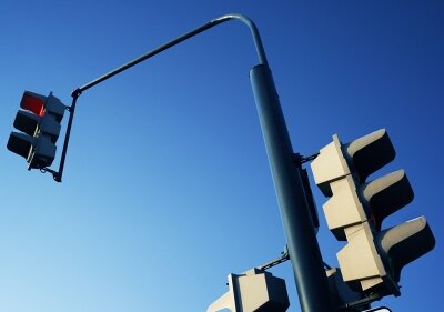 Светофоры для мотоциклистов меньше, чем светофоры для автовладельцев, и устанавливаются ниже, чтобы байкерам их было лучше видно.