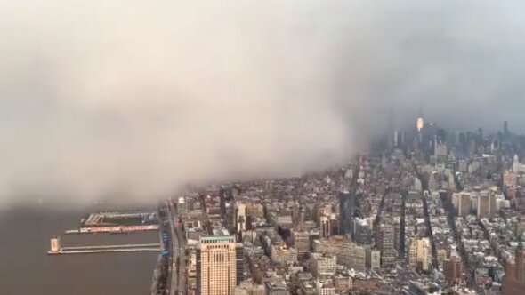 Чтобы снять «ледяное» облако, камеру установили на одной из башен нового комплекса Всемирного торгового центра. По кадрам видеозаписи видно, как огромное белое облако, похожее на туман, надвигается на город и буквально накрывает его. В результате невозможно разглядеть даже небоскребы. По свидетельствам очевидцев, «белая волна» накрыла не только Нью-Йорк, но и три соседних штата. Впрочем снежная буря отступила так же бысто, как и пришла.