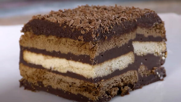 Есть еще один рецепт торта из печенья, который готовится без выпечки и всего из четырех ингредиентов. На смешивание продуктов и всю работу над десертом в целом уйдет около 20 минут.