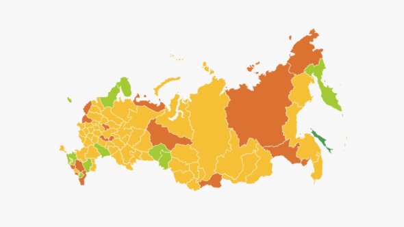 Согласно карте, в настоящее время большинство регионов находятся на первом этапе снятия ограничений. Он предусматривает возобновление работы небольших объектов непродовольственной торговли и услуг, а также возможность прогулок и занятий спортом на улице.