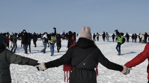 Как сообщает PrimaMedia, во время митингов во Владивостоке число силовиков превышало число участников. Всего на акцию пришли около 100 человек. Позже они двинулись в сторону набережной и вышли на лед, где водили хороводы. По меньшей мере 20 человек были задержаны.