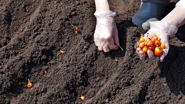 - Высаживать лук нужно на глубину порядка пяти сантиметров (в зависимости от размера луковиц).