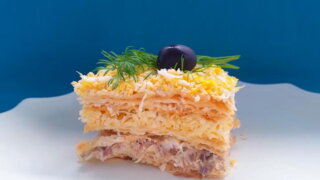 Как приготовить рыбный торт "Наполеон" с консервами на Новый год – 2023: