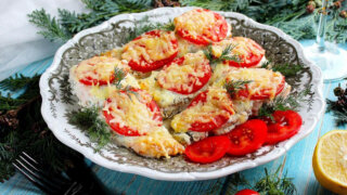 1. Промойте и обсушите рыбу. Приправьте солью и перцем по вкусу, сбрызните небольшим количеством лимонного сока и оставьте мариноваться. Нарежьте помидор тонкими кружочками. Натрите сыр на крупной терке.