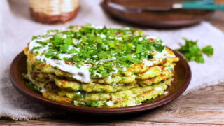 5. Жарьте кабачковые блины с двух сторон на среднем огне, остудите блины.