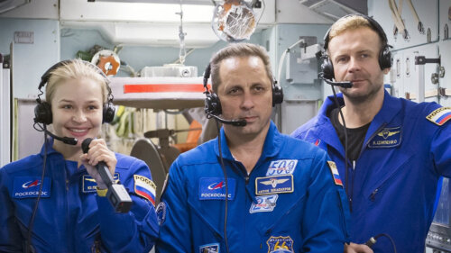 Впервые в истории в космосе начались съемки художественного фильма. На борту МКС находится российский киноэкипаж в числе актрисы Юлии Пересильд и режиссера Клима Шипенко. Они работают над кинокартиной под названием "Вызов".