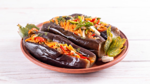 Как приготовить соленые баклажаны, фаршированные овощами