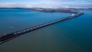 По железнодорожному пути через Керченский пролив будет проходить двухпутная железная дорога. Всего строители уложат 38 километров рельсошпальной решетки. На мосту укладываются термоупрочненные рельсы российского производства.