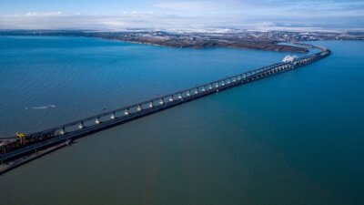 Начальник ФКУ Упрдор «Тамань» Кайрат Турсунбеков рассказал, что сейчас завершается укрупнительная сборка пролетных строений, их поднимают в проектное положение. Ведутся работы по устройству верхнего строения Крымского моста.