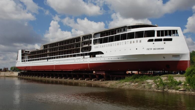 Традиционную бутылку шампанского о борт корабля разбила директор по судоходству на внутренних водных путях Российской палаты судоходства Анна Исаева, пишет RG.