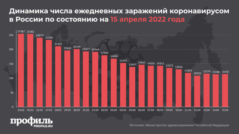 Всего за минувшие сутки было выявлено 11432 новых случая заражения, сообщает в пятницу, 15 апреля, оперштаб по борьбе с распространением заболевания. Количество госпитализаций составило 2867 человек и уменьшилось по сравнению с прошлыми сутками на 8,43%.