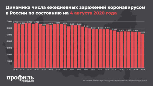 Динамика числа ежедневных заражений коронавирусом в России по состоянию на 4 августа 2020 года