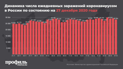 Накануне, 26 декабря в России выявили 29258 случая заболевания. Больше всего зараженных было отмечено в Москве – 7480 человек. В Санкт-Петербурге зафиксировали 3755 заражений, в Подмосковье – 1615.
