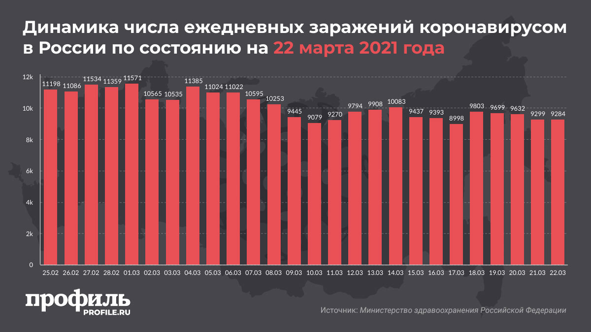 В оперативном штабе по борьбе с распространением коронавируса в понедельник, 22 марта, сообщили, что число вылечившихся от вируса за сутки составило 7790. В общей сложности в стране уже выздоровели 91,3% заразившихся.