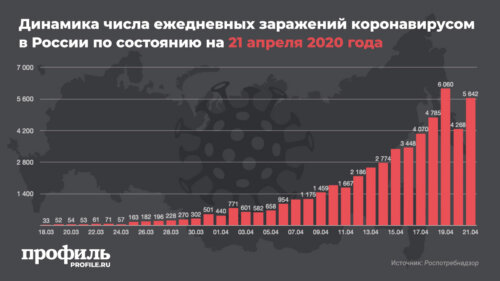 При этом отмечается, что за сутки от диагноза скончался 51 человек. В общей сложности число погибших от коронавирусной инфекции в России составило 456 человек, пишет «Коммерсант». За последние сутки выздоровело 427 человек, всего выписано 3873 пациента.