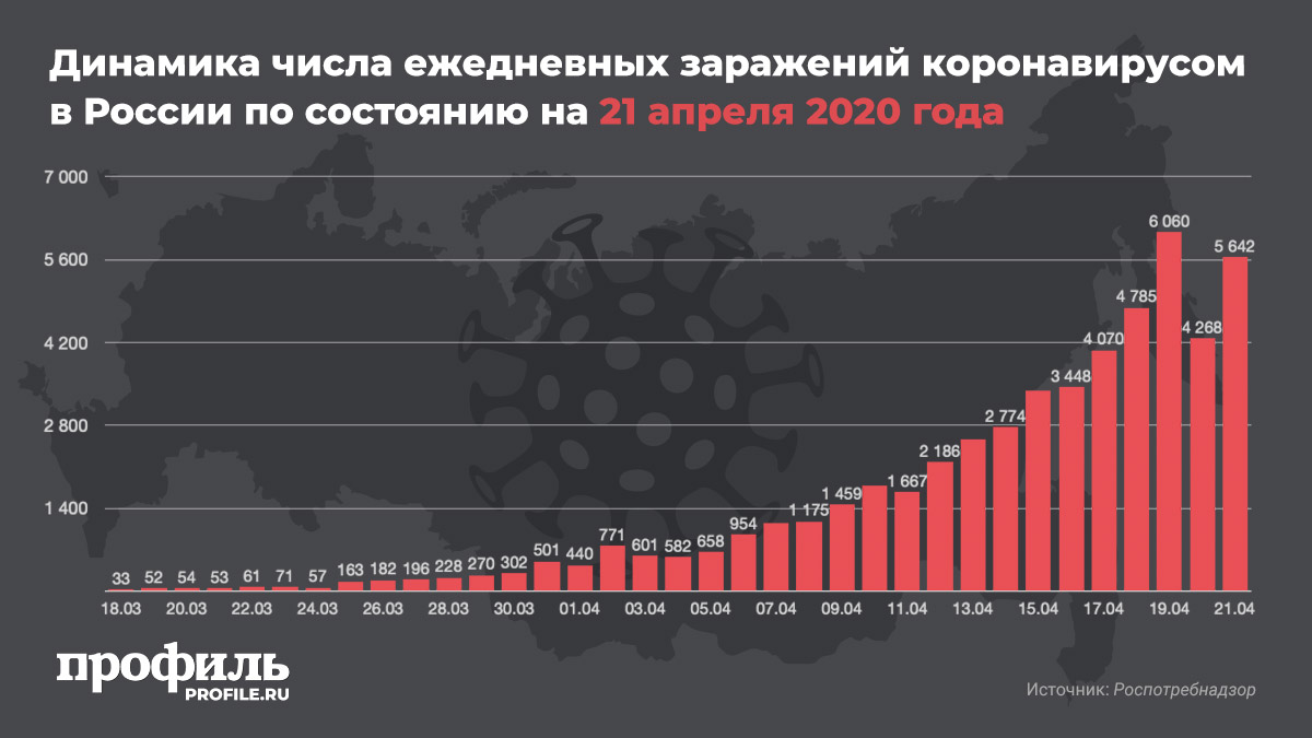 «За последние сутки в России подтвержденных случаев коронавирусной инфекции COVID-19 – 5 642 в 78 регионах, в том числе выявлено активно и без клинических проявлений 2 567 (45,5%)», – цитирует РИА Новости представителей оперативного штаба по борьбе с распространением коронавируса.