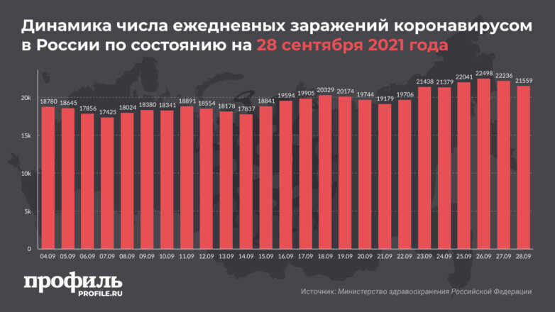 "За последние сутки в России подтвержденных случаев новой коронавирусной инфекции COVID-19 – 21559 в 85 регионах, в том числе выявлено активно 1709 (7,9%) без клинических проявлений", – сказано в сообщении.