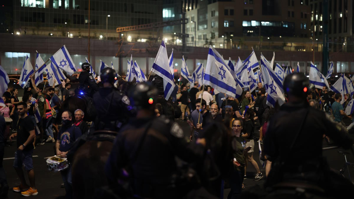 Ранее в субботу более 100 тыс. человек приняли участие в согласованной акции перед комплексом правительственных зданий на улице Каплан. После ее окончания большая часть протестующих начала расходиться по домам. Однако группа наиболее активных демонстрантов отказалась прекращать акцию и направилась в сторону шоссе Аялон – центральной магистрали Тель-Авива. Как отмечает корреспондент РИА, другие протестующие поддерживают их, размахивая флагами и выкрикивая антиправительственные лозунги.